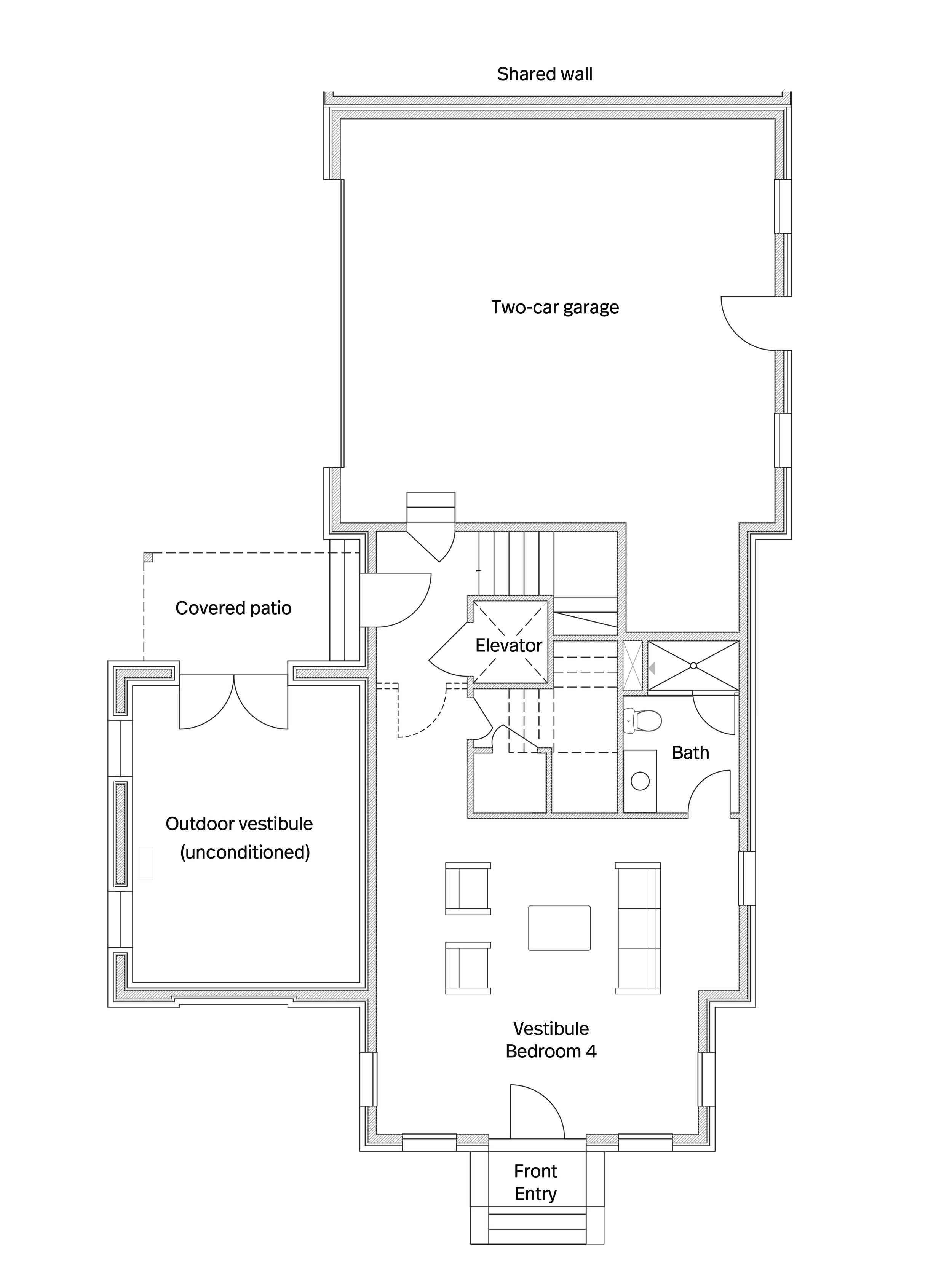 • Sound-dampening Rockwool insulation in shared walls for added privacy