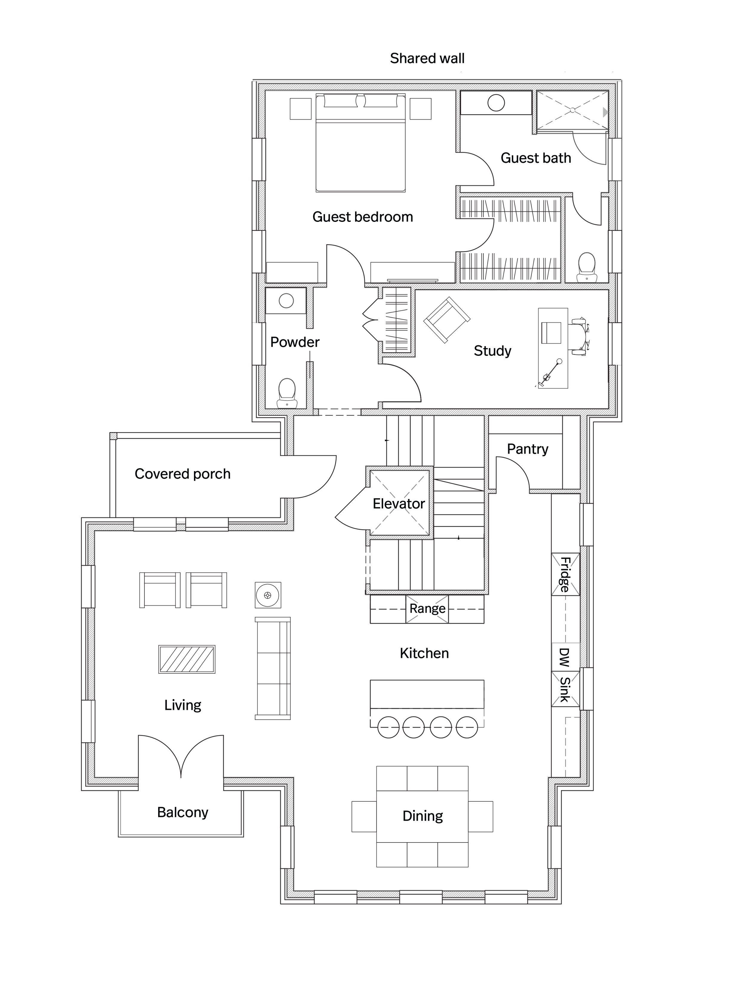 • Door heights: 8’ on the second floor, 7’ on the first and third floors